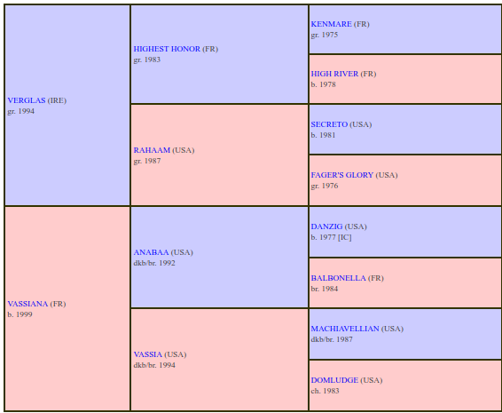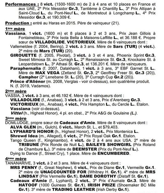 C’est un fils de Verglas reconnu pour sa capacité à être améliorateur et à produire précoce. Il est issu d’une famille maternelle précoce qui a notamment produit Blackbeard (Prix Morny, Gr. 1), Girouette (Phoenix Sprint Gr. 3), Villadolide (Prix d’Arenberg, Gtr. 3) et Mrs Penny (Prix de Diane, Gr. 1, Vermeille, Gr. 1).